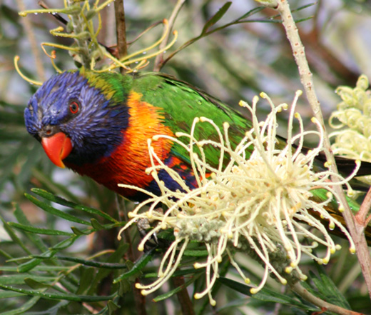 In the meantime here are a couple of photos from my garden this week. A lorikeet feeding on nectar from my large Grevillea ‘Moonlight’ and the final spring flowerings of a grafted Western Australian Dryandra that has taken 4 years to flower – but worth the wait! I already have a design drawn of this lovely flower.