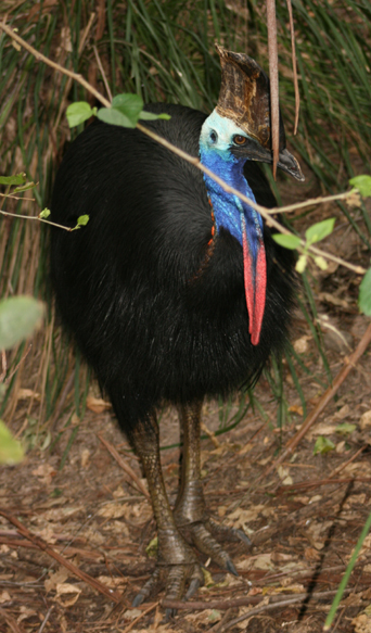 Cassowary are huge scary birds – they have large, dangerous toed feet and that bony ‘headpiece’ can do serious damage to unwary intruders. The cassowary conservation website highlights the dangers –