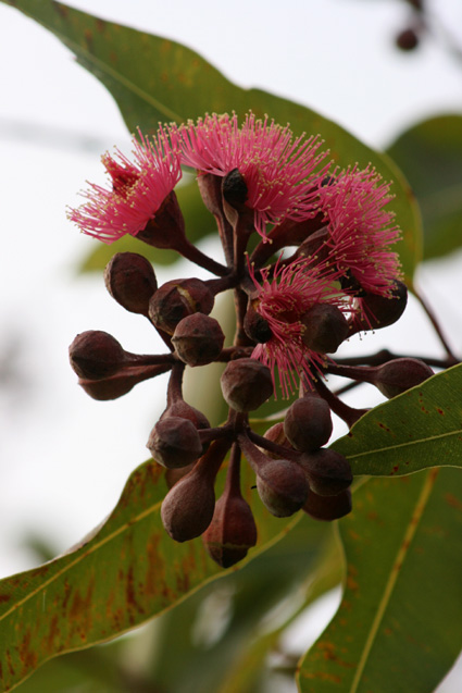 Their common name is Swamp or Spring bloodwood – a Western Australian species. They tend to be an open spindly tree but with large lovely leaves with these vibrant buds and flowers.