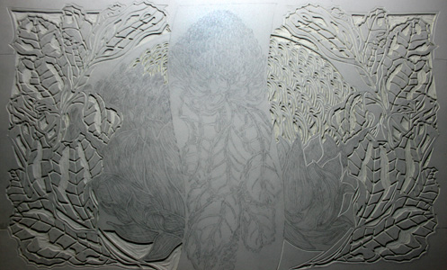 I am still deciding on the style of hatching I would like to carve on the leaves – so have left the sections that you can see on the leaves at the top of this image as flat raised areas – need to make the decision soon…