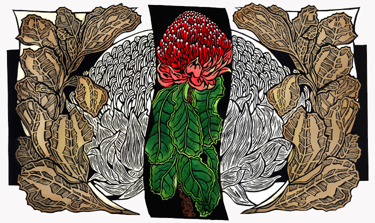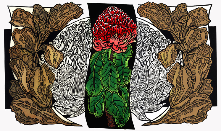 Here are the 3 colour samples I’ve worked on so far – I’ve noticed that some computer screens really mess with the actual colours – Waratahs Watercolour 1 – has pale green outside leaves – Waratahs Watercolour 2 – has deeper sepia type colours and Waratahs Watercolour 3 – has pale sepia colours.