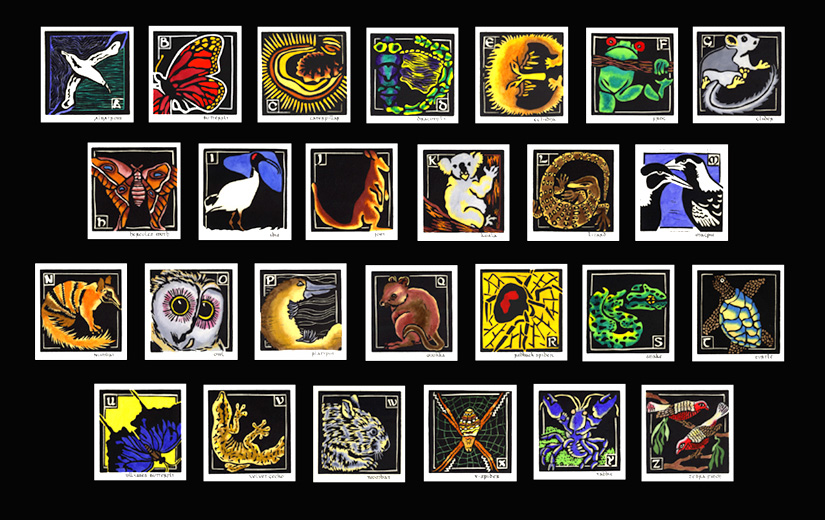 2 thoughts on “Australian Wildlife Alphabet … Linocuts