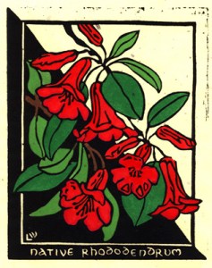I have previously designed a linocut using native rhododenrons but have revisited them for some new linocut designs.