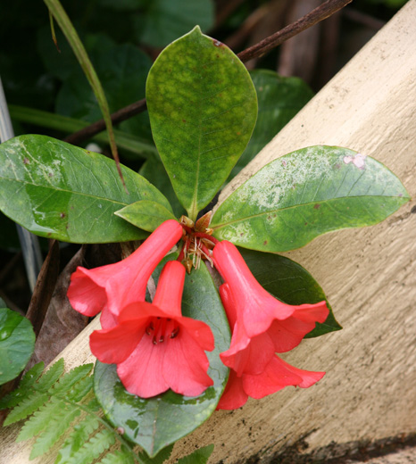 Tucked in behind my front steps I have just found these spectacular Native Rhododendron flowers. These flowers are a deep pinky red and about 10cm in length.
