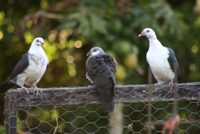 A few days ago I photographed these Baldy Pigeons (they are also known as White-Headed pigeons) over on the Clarence River near Grafton in northern NSW. These three had come in close to a birdbath to have their afternoon drink and were lined up on a trellis. They usually are only seen around this area at this time of year feeding on figs which had fallen on the ground from the large Moreton Bay Fig tree.