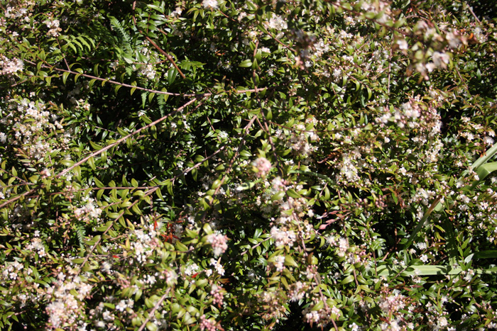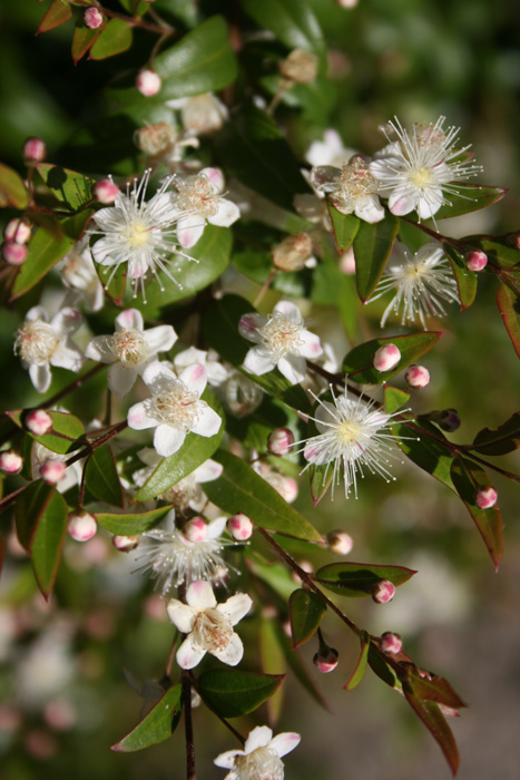 At this time of year it is covered in small starry flowers with small green foliage whose new growth has leaves tipped in red. It is interesting that many Australian plants have this characteristic – including Eucalypts and Lilly Pillies. We have had a lot of success in growing this plant and it seems quite hardy.