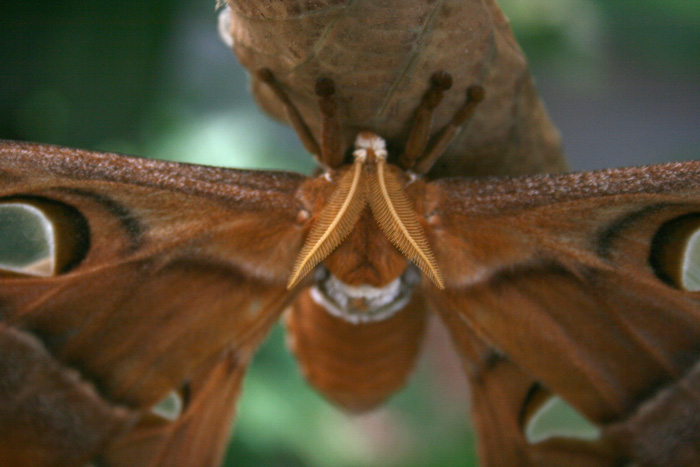 The only Hercules moths I had seen until Sunday were the ‘pinned’ variety in museums – I must say the rich vibrant browns, the size of this moth and the detail down to those feather-like antenna in a real life alive creature cannot compare!