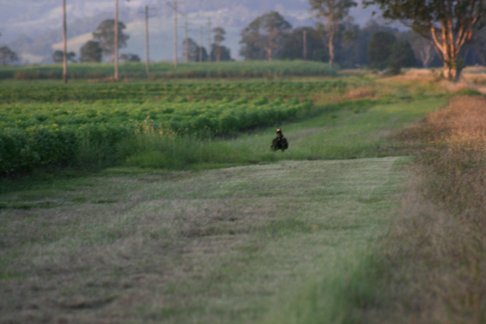 Fortunately (although the fox who was the roadkill probably didn’t think so!) they were all fine – but were screeching and not impressed that this car with that annoying person with camera were interrupting their feeding. I am guessing that perhaps they were 2 parent birds with their young – although they were quite well grown. I do not know much about wedgetail eagle behaviour – I am aware of a pair of birds who I frequently see in the 2 valleys surrounding this area but I have only ever seen 2 together in this territory. There is also a pair of wegetail eagles in the valley on the road to Kyogle.