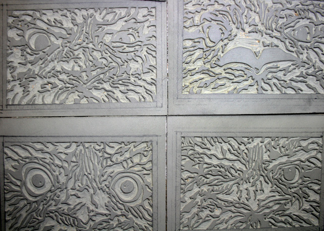 This is the current state – four small linocut carvings completed and starting on a fifth – only eight to go!