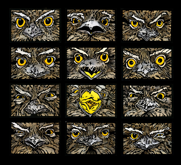 TawnyExpressionsWEB3I have finally started to get back to work – although slowly – and have just updated my website with the final version of the ‘Tawny Expressions’ linocut which I have called ‘Evry Move You Make…Watching YOU’.