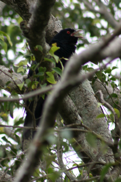 This is a male Common Koel – they are all black with a distinctive red eye. The second photo shows it making its distinctive call. I have always loved their calls and don’t really mind it going all day and night. My dad tells me they have really lovely soft pink eggs that are speckled. The male Common Koel’s role is to annoy the birds in the area of a nest and when he has distracted the other birds and drawn them away, the female flies in and lays her eggs into the foster parent’s nest.