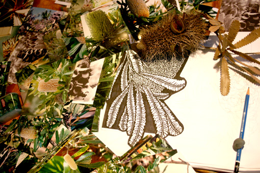 ‘Perhaps I should look at adding to the DESIGNART series‘ with something a bit different – Banksia serrata, seedpod and leaves.