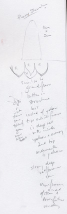 So the original quick idea to base it on an earlier ‘template’ of a NSW Christmas Bush was what I worked with. I then researched the differences between the different species of Blandfordia and noted the differences in my sketchbook.