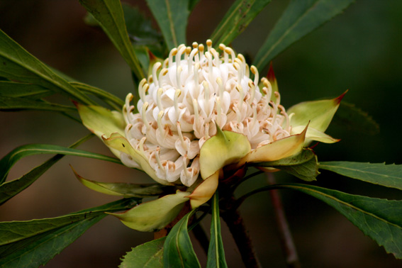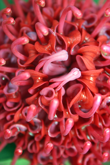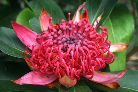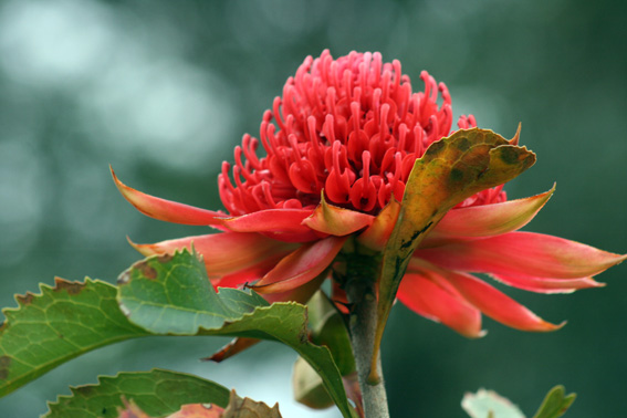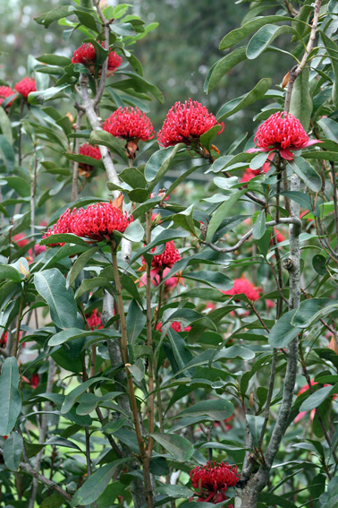 I find waratahs – Telopea speciosissima – irresistible – the bright red large flowers are found at the end of tall spires of leaves and can be ‘seen from afar’ – Greek ‘telepos’ – Telopea