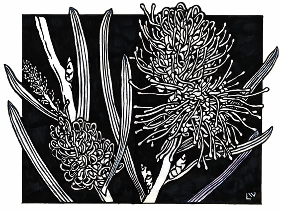 In the case of two new designs this is what happened. I had worked up both a Hakea and Grevillea design in a larger format of the Design Series but I wasn’t really happy with them so to the side they went.