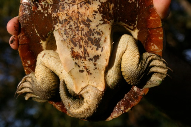 This little fellow decided – as you would do if you were a turtle and one of these rather large creatures decided to pick you up and look at your undersides – he/she hid.