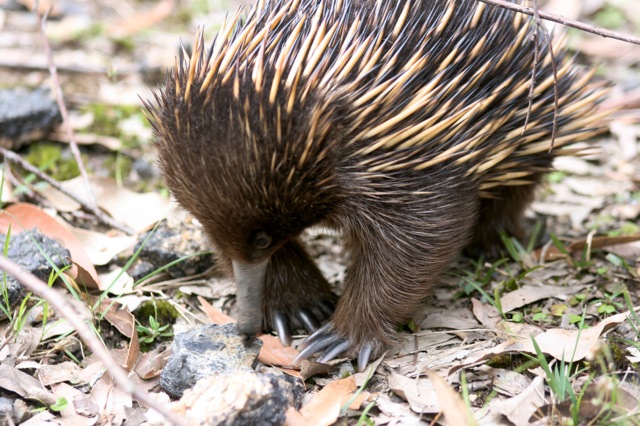 Short beaked Echidnas – or spiny anteaters – are rather odd little creatures, they are a mammal that lays eggs and as you can see have long claws for burrowing and those amazing spines. If feeling threatened the Echidna buries itself down into the dirt and raises its spines – I must say a very effective deterrent to predators. The only hope they have is to get the Echidna turned over to attack it from underneath, away from those wicked looking spines.