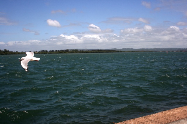 Took a couple of photos over the Richmond River at high king tide with seagull flying against the wind.