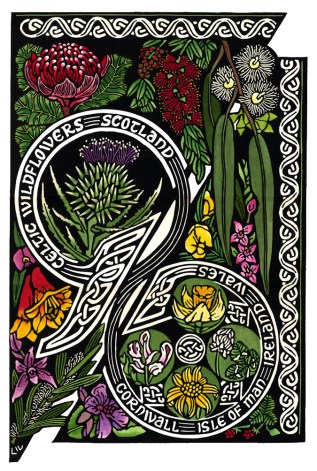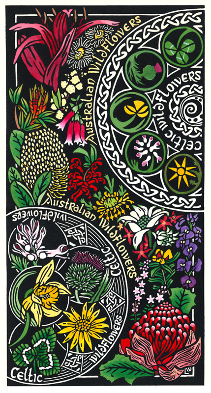 When updating this blog today I realised that I had not mentioned the Celtic Wildflowers collection. It was designed at the request of Sutherland Shire Council Cultural Planning and Events Unit, for their Heritage Festival – Parc Menai Celtic Festival 7-9th March, 2003. The ‘brief’ was to provide ‘Celtic’ artwork using wildflowers from Scotland, Ireland, Cornwall, Isle of Man & Wales as these were the 5 regions being represented at the festival.