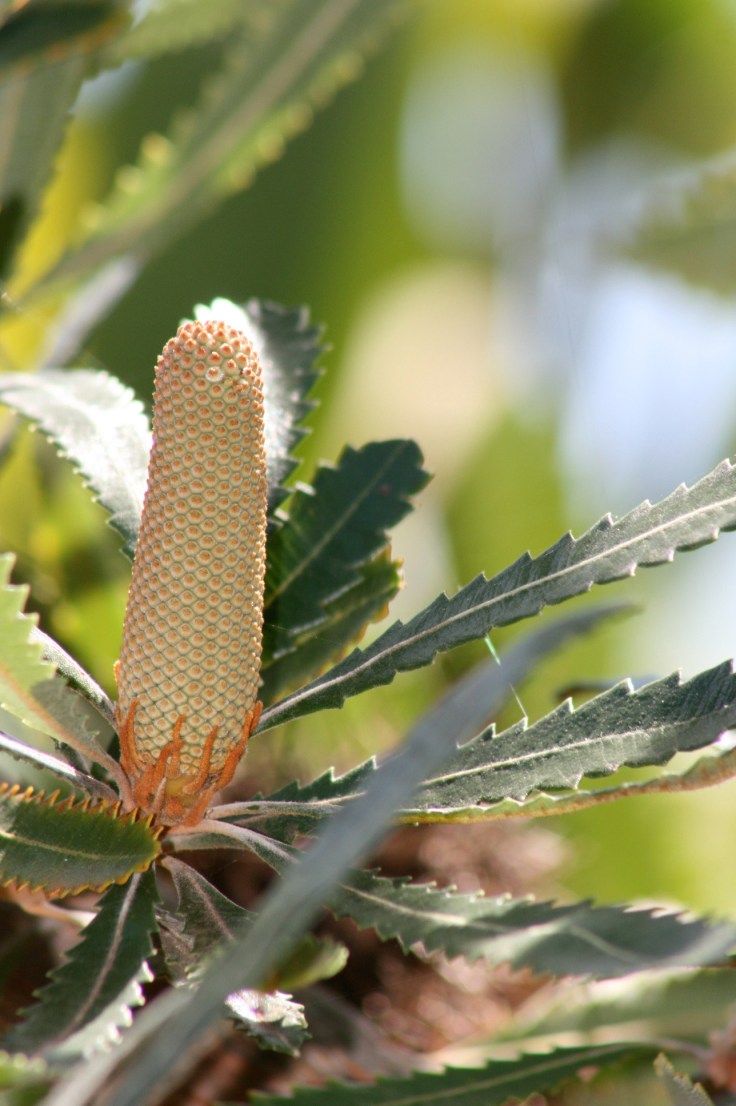Above is the tightly woven ‘cone’ before it bursts forth – Banksia serrata – Saw Banksia or Old Man Banksia.