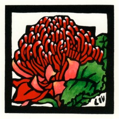 I mentioned a while back the difficulties I had with the lino and re-printing the Mini Waratah but am very pleased with the newly carved clean and crisp linoblock and prints now. It was well worth the effort of re-carving this design.