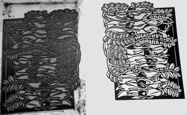 Here is the final carved lino block.