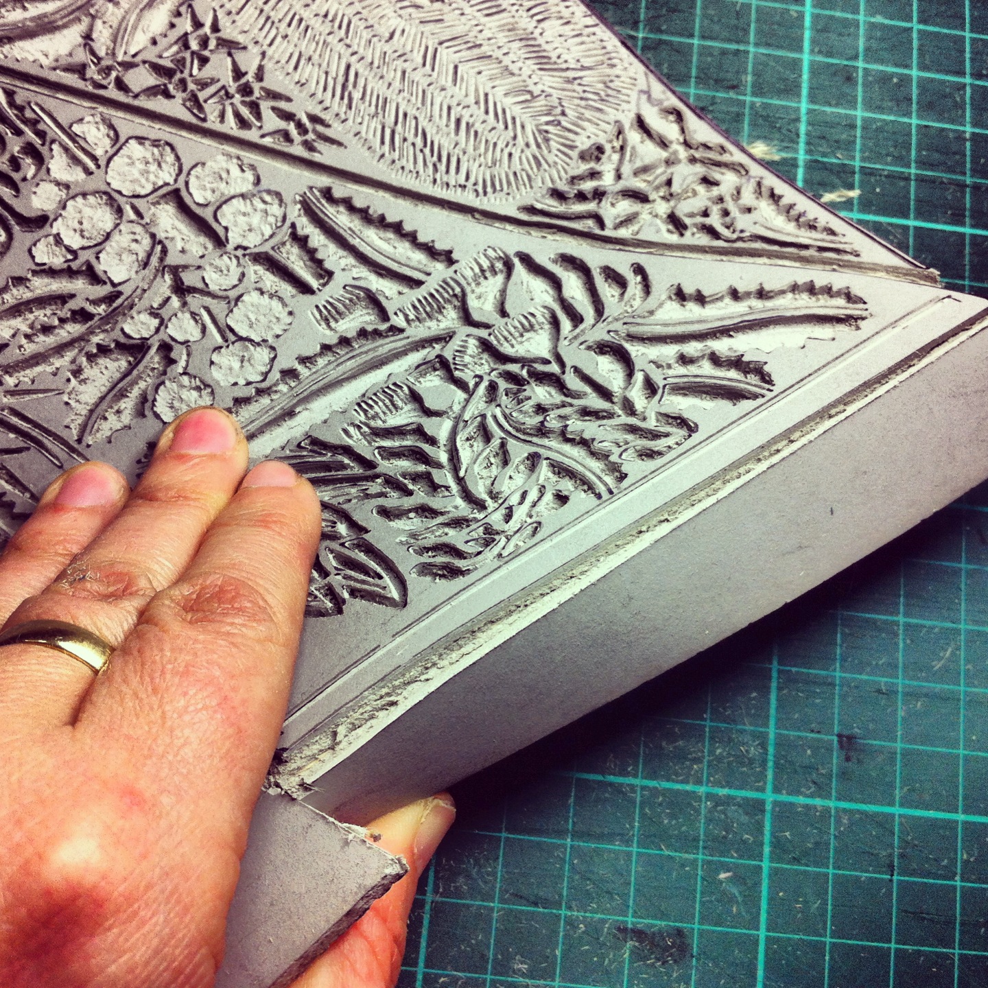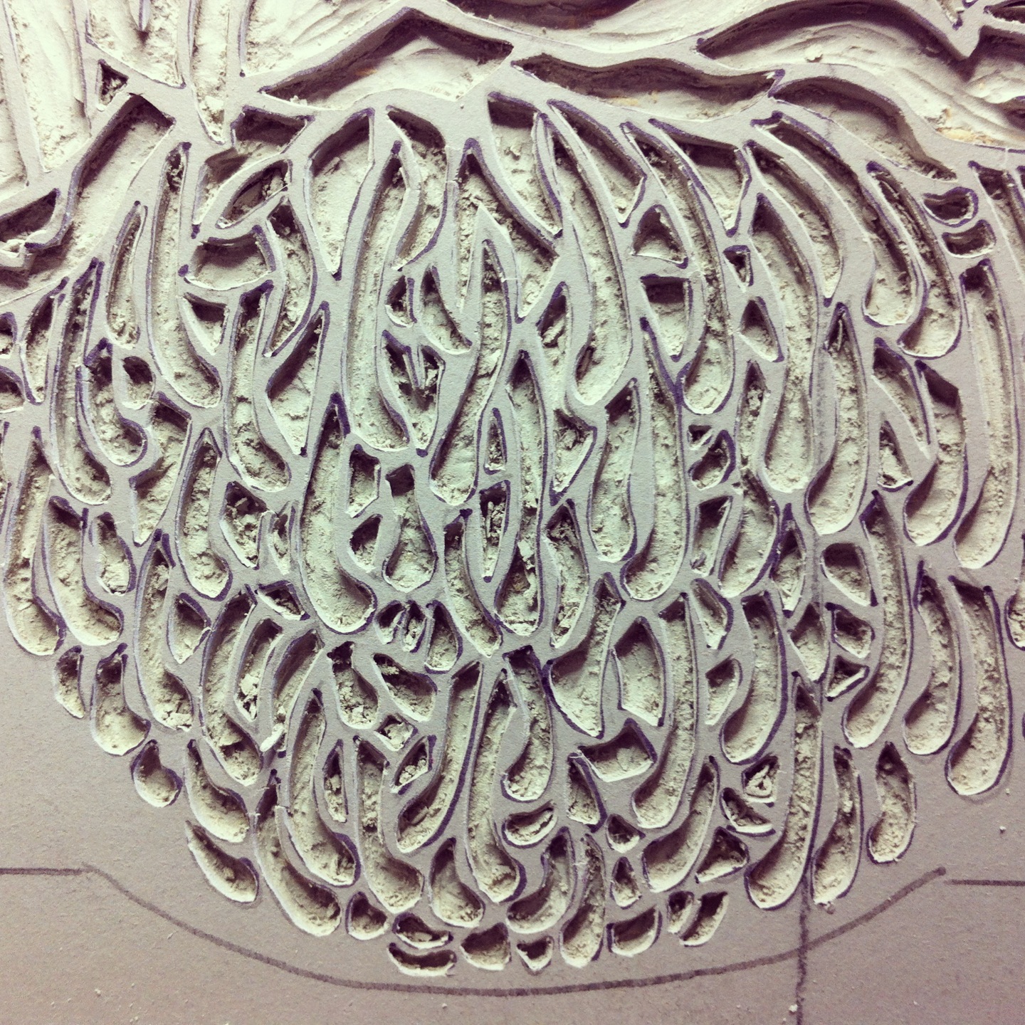 Well I have been steadily working on the linocut carving. Took a break for a day yesterday but back at it today.