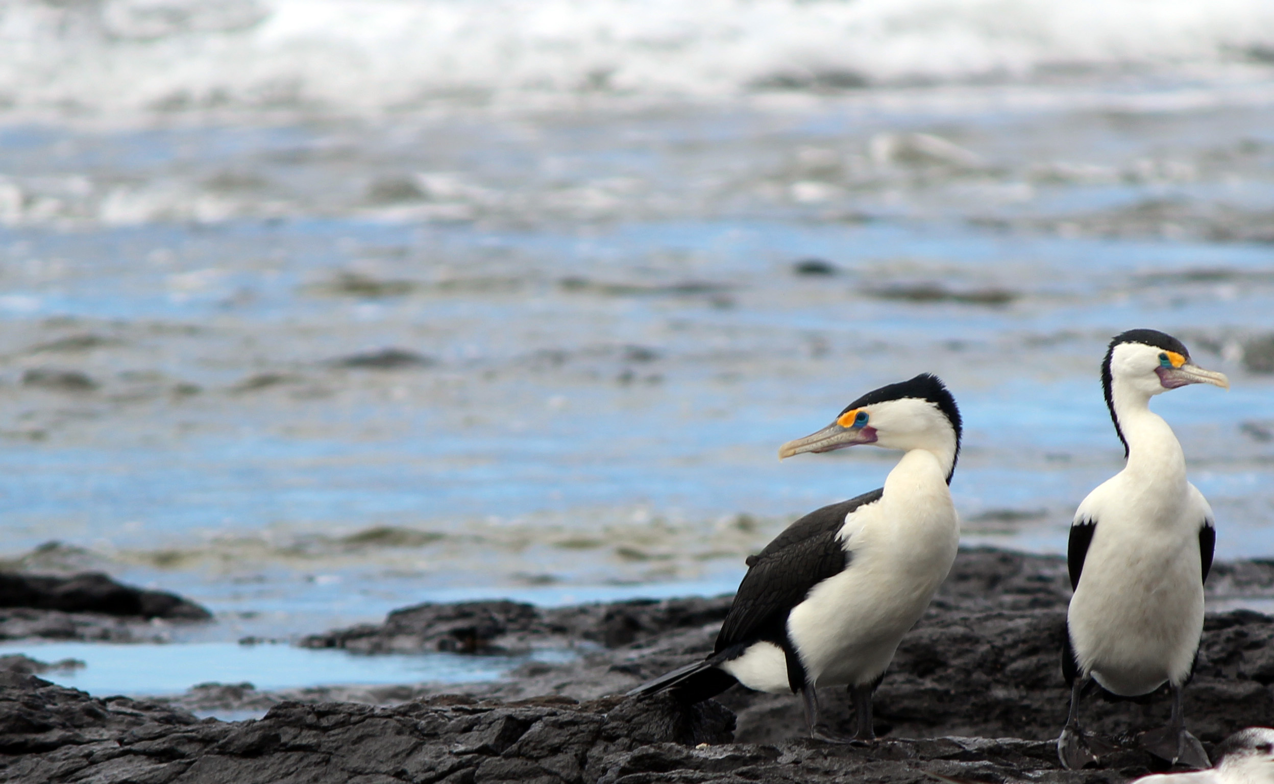 Your photographs are quite striking: the intimate feeling of the groups of birds going about their daily lives with the power of the surf behind them.