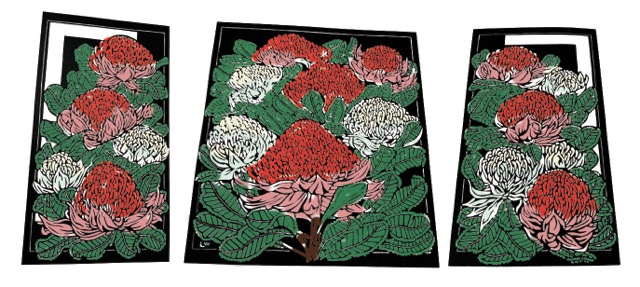 I already knew I wanted to make it into a triptych & I had taken some photos pf both red and white waratahs over the years so decided to incorporate both into this design.