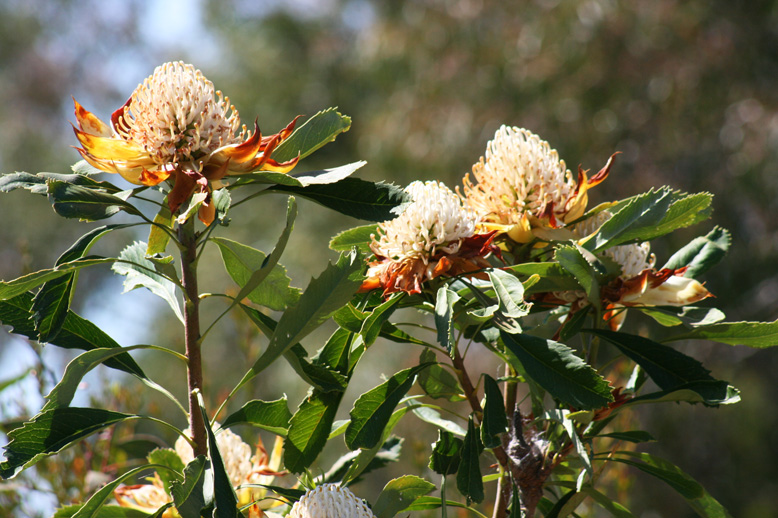 There is such a majesty & structural quality to these particular Australian wildflowers not withstanding their bright red colouring with deep green leaves & the fact the flowers occur on long stems coming up from the ground. They really can be ‘seen from afar’ as their name means.