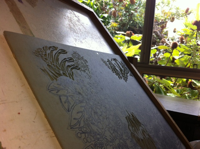 A view from my srawing/carving/painting board out to the native banksias outside my studio window.