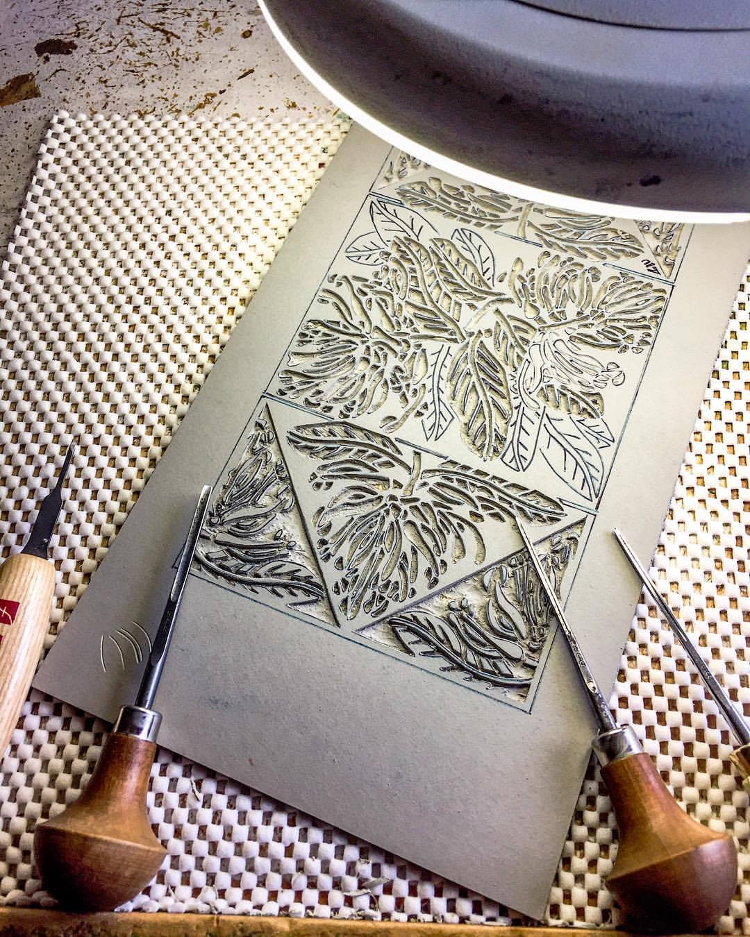 A series of photographs from Instagram of the progression of carving the Grevillea imaginings lincout. It is quite a fine design with small parts so is by it’s nature slow & fiddly. I have however been struggling with chronic pain issues & life interfering with art!
