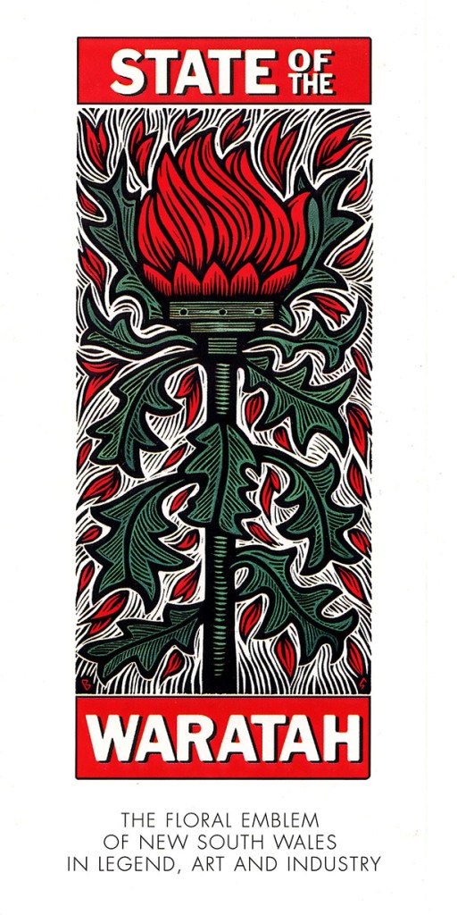 The curator of the State of the Waratah Exhibition was Rosie Nice who along with Leo Scholfield provide a book ‘State of the Waratah: The Floral Emblem of New South Wales in Legend, Art and Industry’. Rosie Nice card and note about the reception of my linocuts in the exhibition ‘I know your work was much admired’ which were lovely words for her to write and to receive.