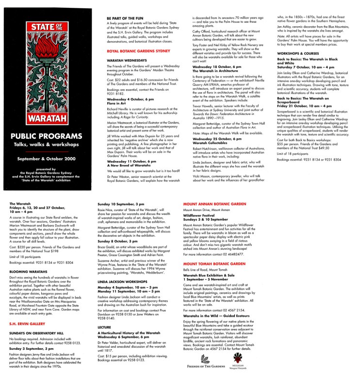 Public programs an walks involving the Royal Botanic Gardens in Sydney, Mt Annan and Mt Tomah all participated with events. Below are some of the brochures about these events.