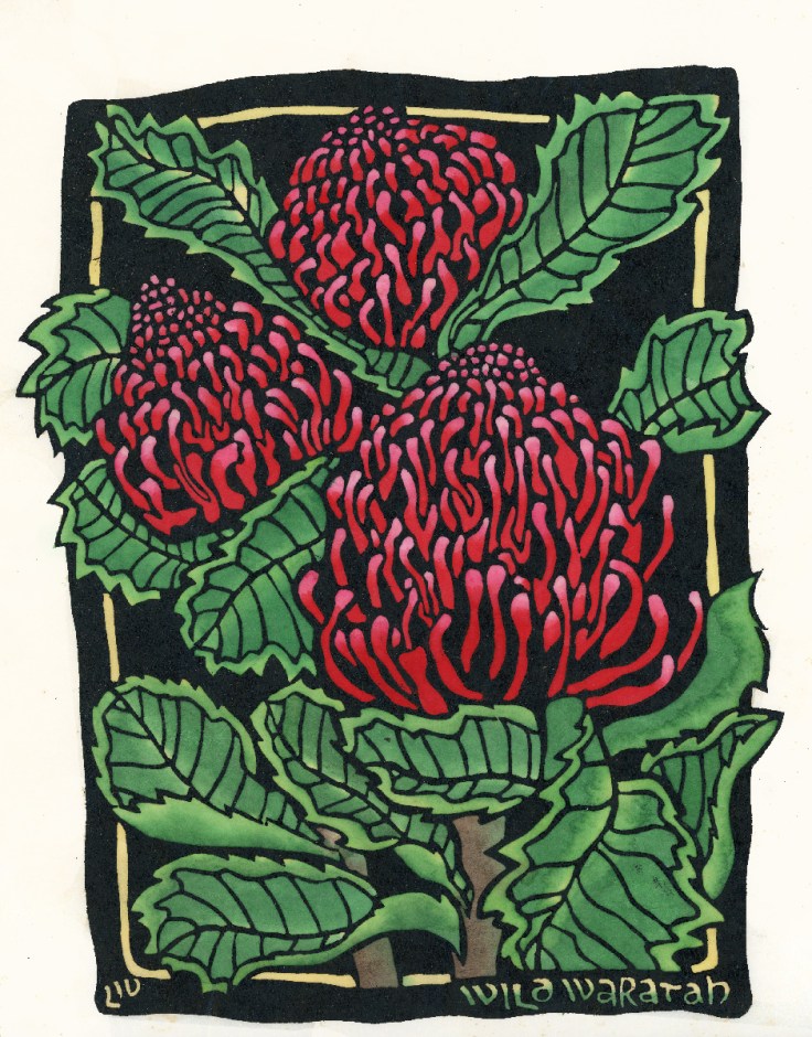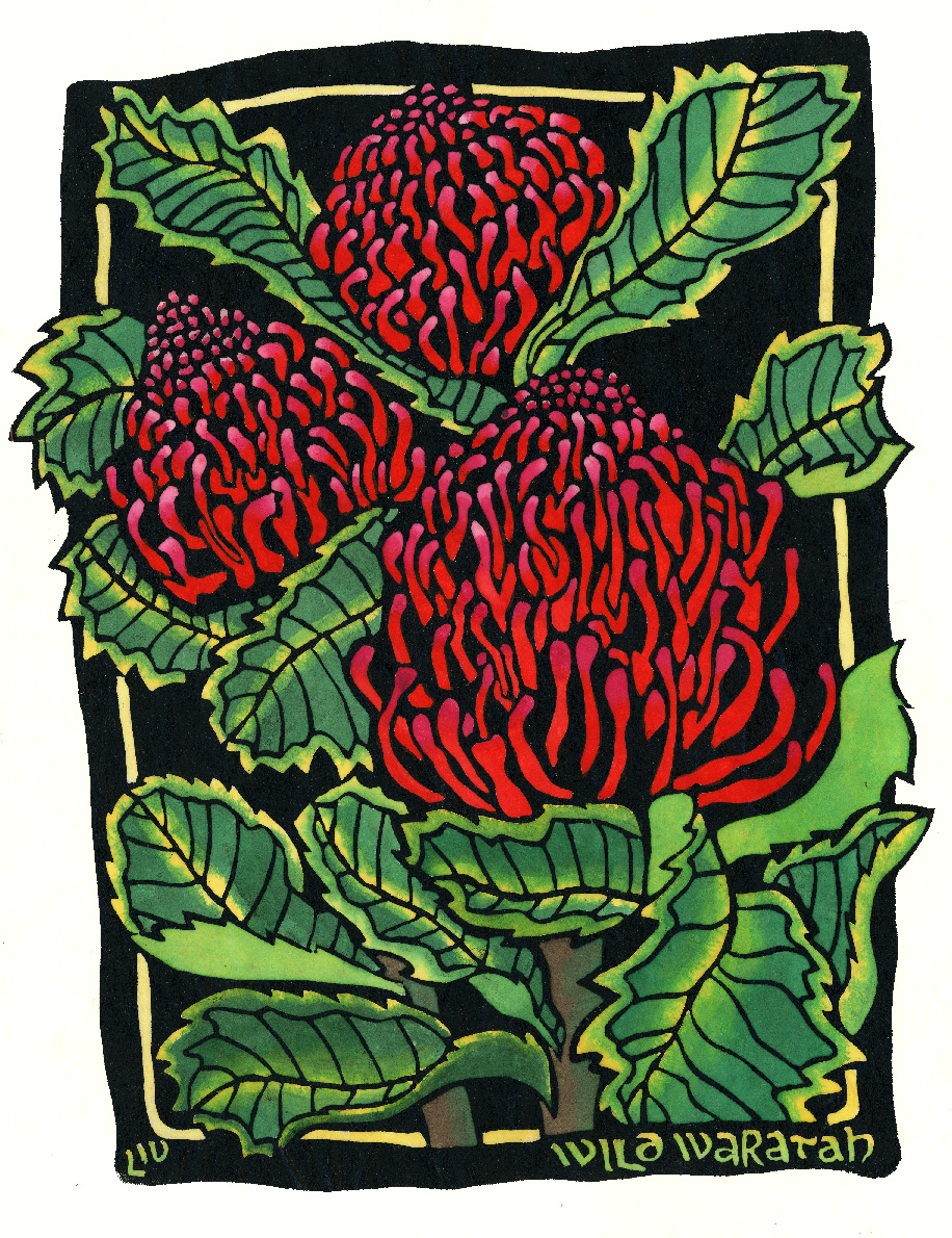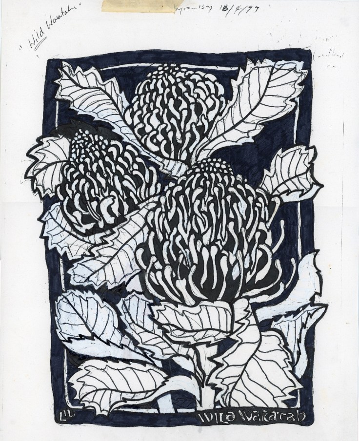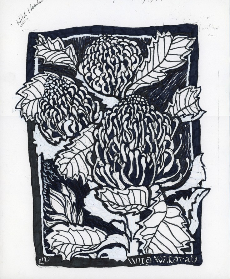 This drawing became the ‘Wild Waratahs’ design and Linocut.