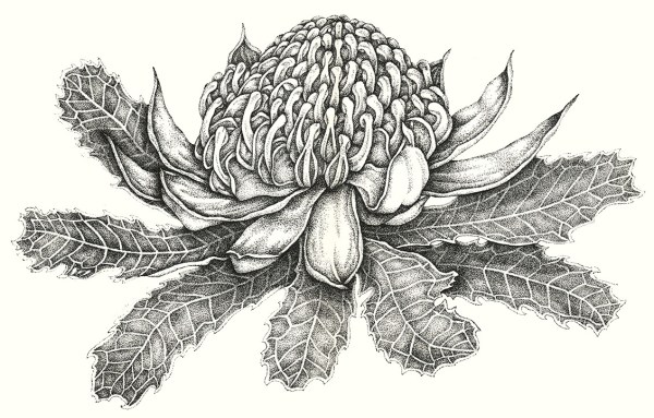 I have recently just finished a pen & ink drawing of a Waratah - Telopia speciosissima. Waratahs are a favourite wildflower of mine especially as I grew up in Sydney & remember the thrill of coming across one unexpectedly when I was roaming around in the bushland near my childhood home. I use a fine... Continue Reading →